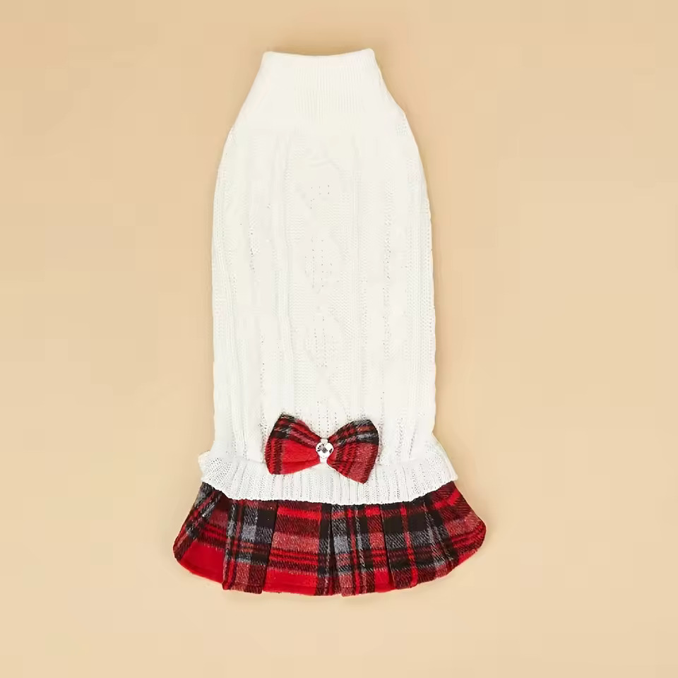 Made from soft, high-quality knitted yarn, this dog sweater dress provides excellent warmth while remaining lightweight, breathable, and gentle on your pet’s skin. The turtleneck design helps protect your dog’s neck from cold wind, while the cute bowtie adds a charming fashion touch—perfect for daily wear, walks, photoshoots, and special occasions.